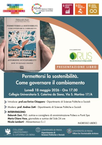 Presentazione di "Permettersi la sostenibilità. Come governare il cambiamento" di Deborah Zani, nell'ambito del Festival dello sviluppo sostenibile 2026, a cura di Asvis Allenza Italiana per lo Sviluppo Sostenibile.