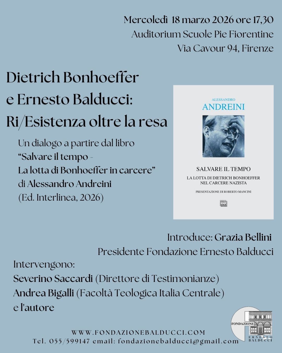 Un dialogo a partire dal libro "Salvare il tempo - La lotta di Bonhoeffer in carcere" di Alessandro Andreini