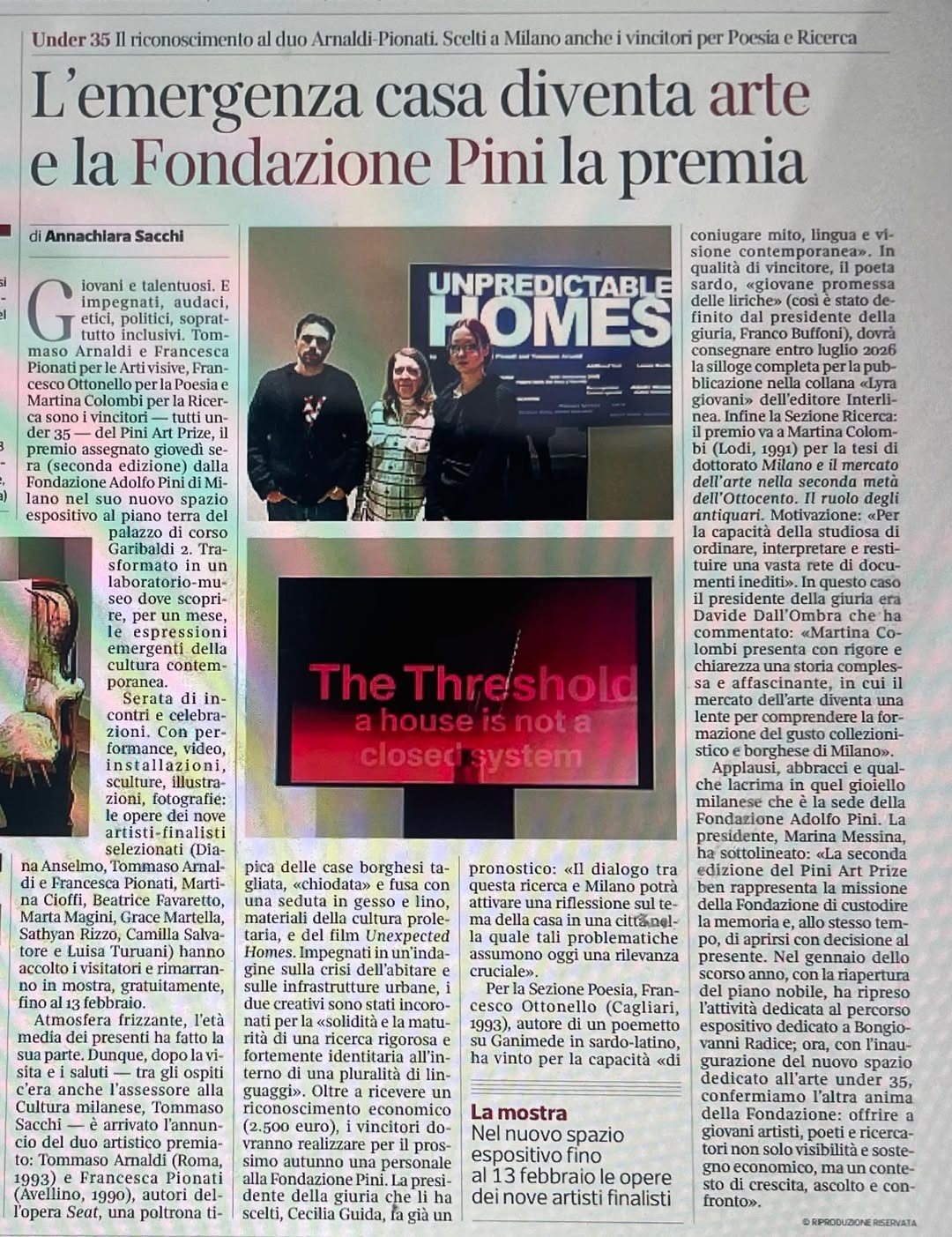 L'emergenza casa diventa arte e la Fondazione Pini la premia